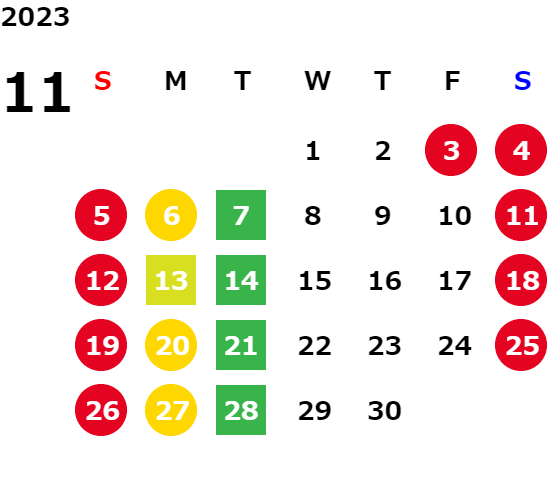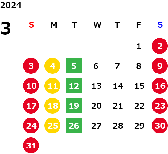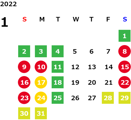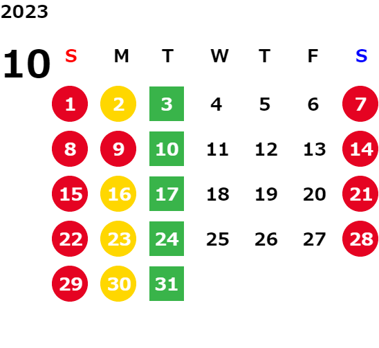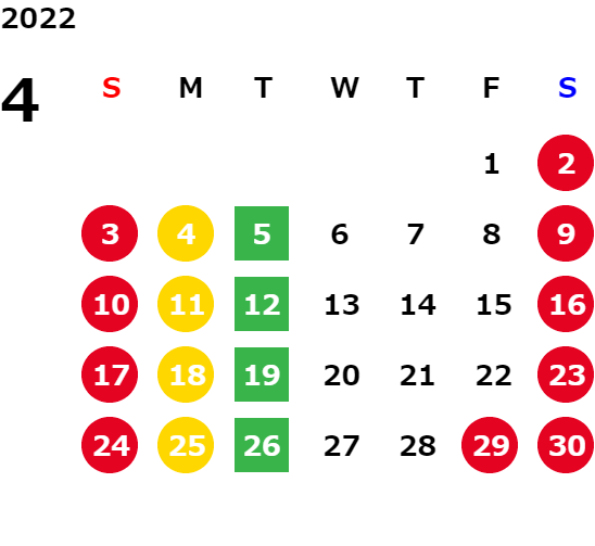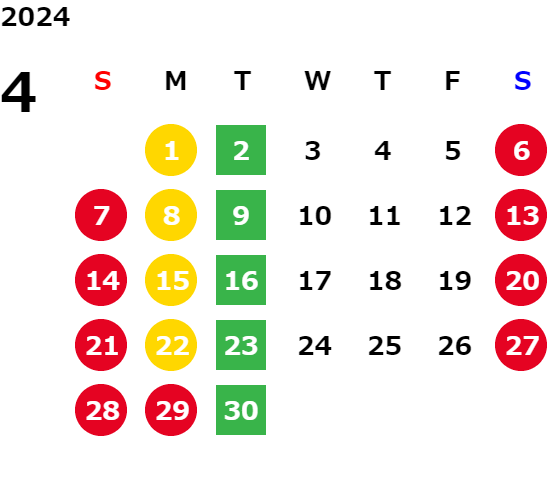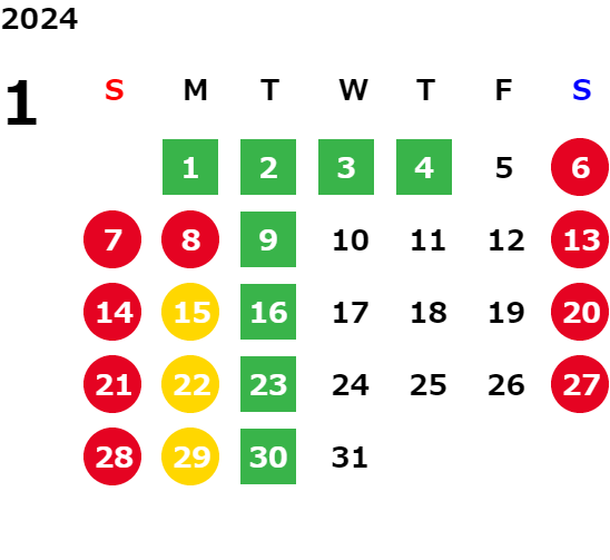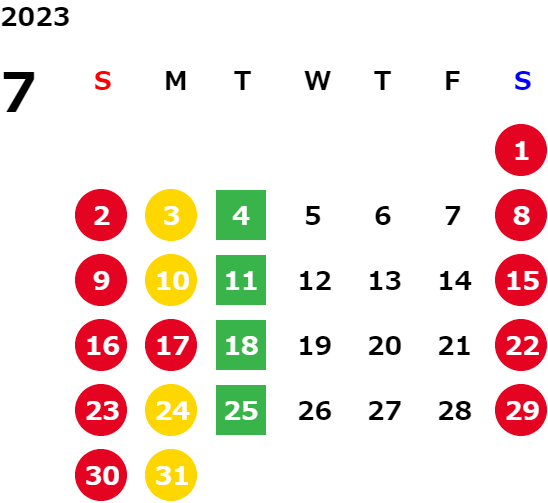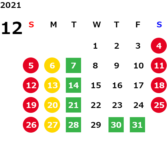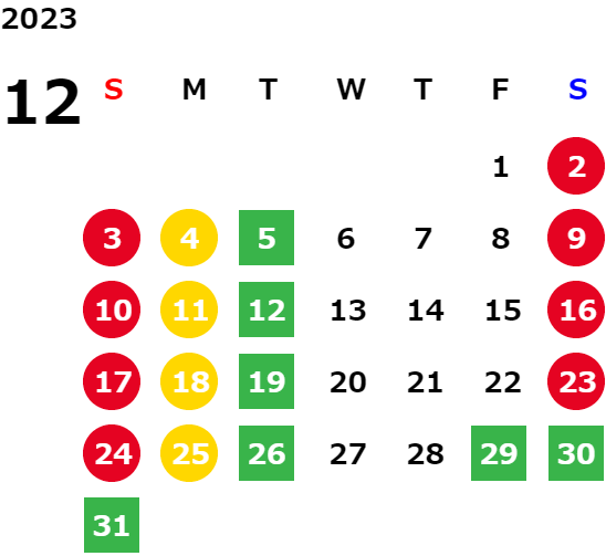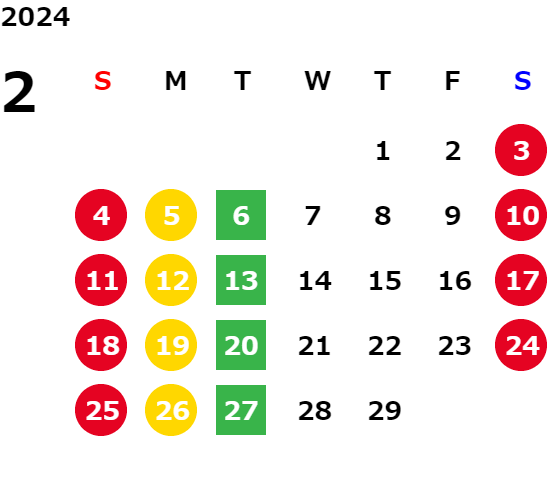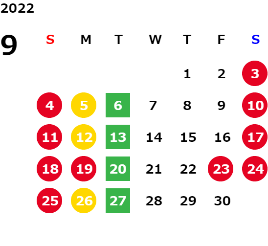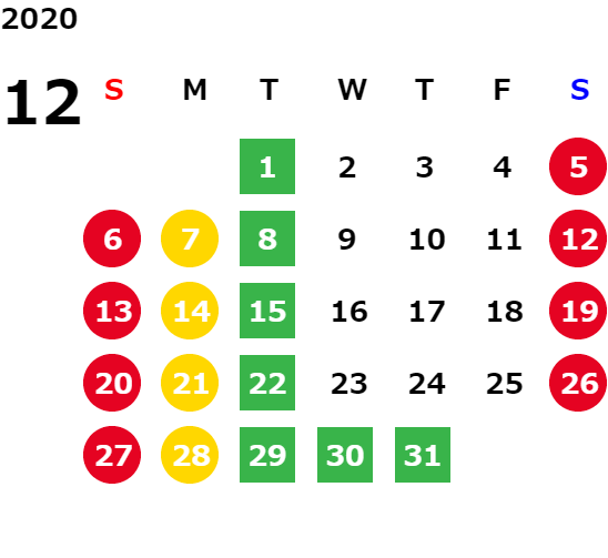 営業日カレンダー