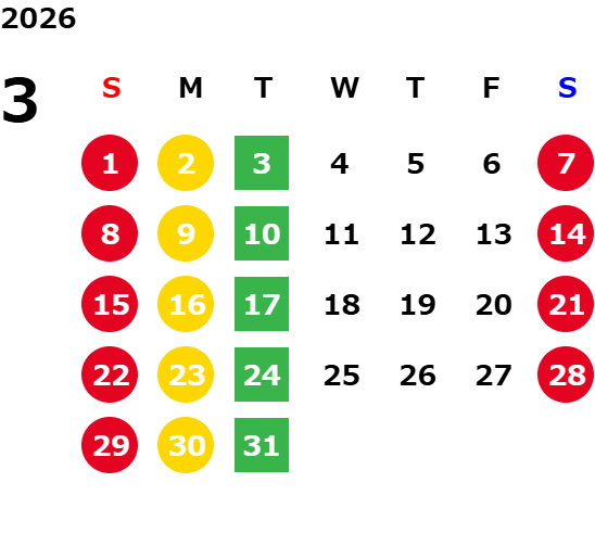 毎週火曜日(祝日・夏季・年末年始除く)