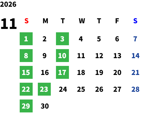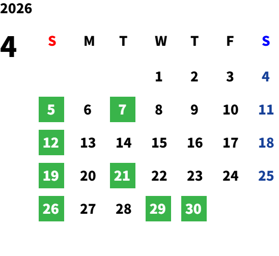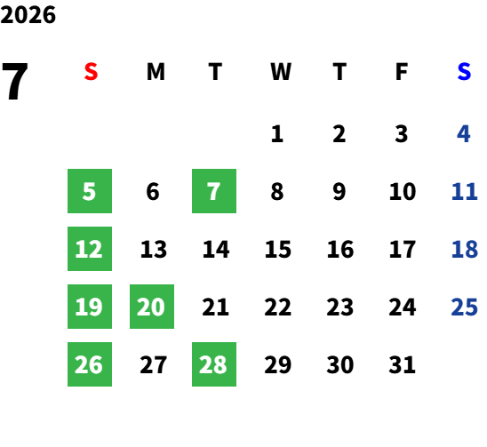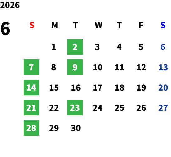 毎週日曜日(祝日・夏季・年末年始除く)