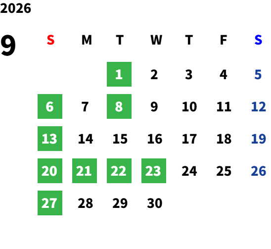営業日カレンダー
