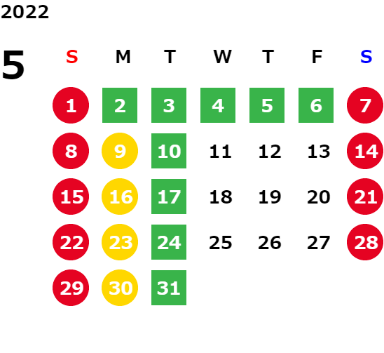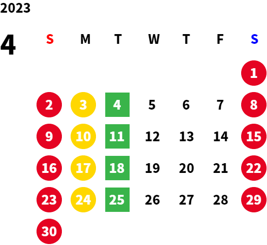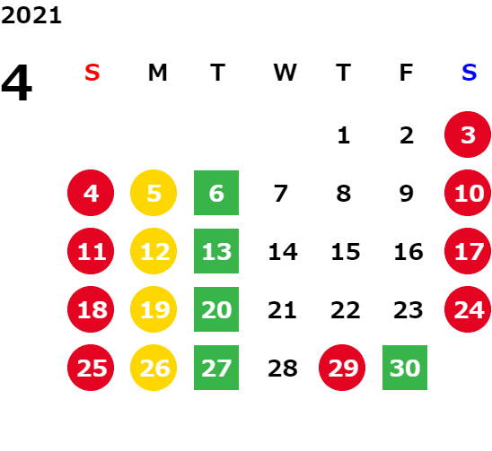 営業日カレンダー